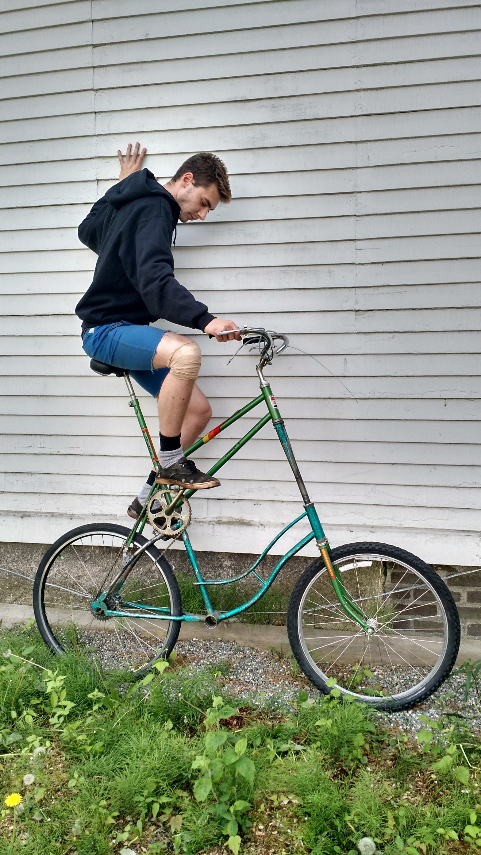 After some inspiration from the kooky Zenga Bros, Liam Grace-Flood and I spent some of our free time towards the end of the term working on a fun funky tall bike. The basic idea is fairly straightforwards: stack two bike frames on top of each other, and merge the forks with one long steerer tube. I attempted to improve slightly upon this design by creating a double fork rather than a single longer one. The longer design only utilizes two headset bearings, one at the very top and the other at the very bottom. By merging the two fork crowns and threaded steerers with an intermediate tube, we were able to use all four bearings and hopefully improve ease of steering. The only concern is that this may leave the front fork as the most vulnerable area to snapping, since a lot of force may be applied against such a small weld. I also think the new fork design ended up looking pretty sweet which was an added plus.