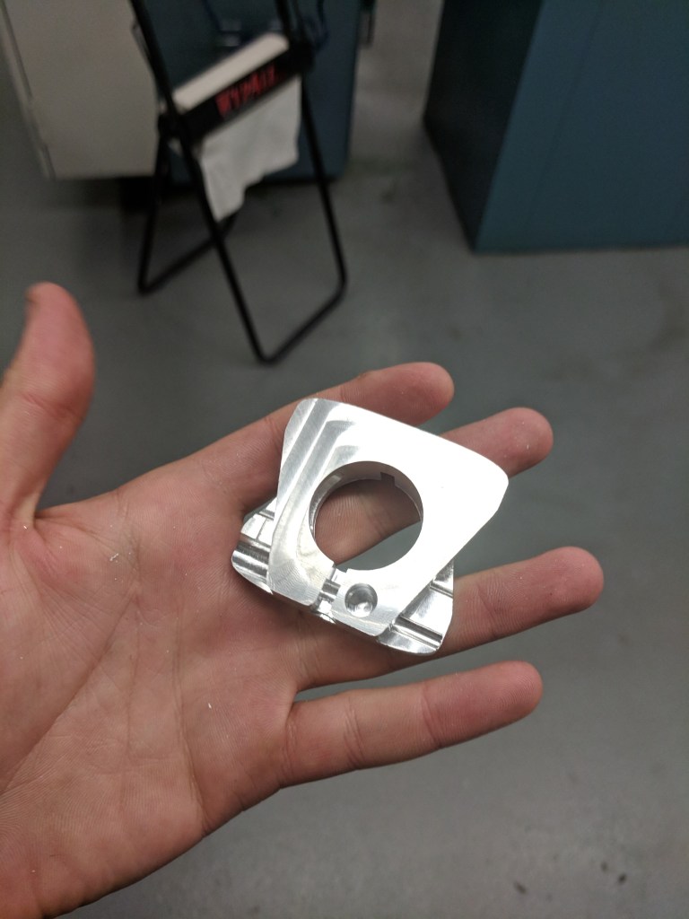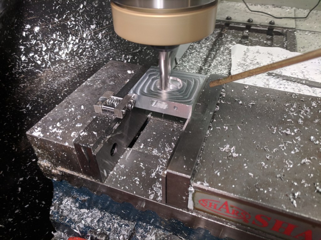 A holiday gift. First time using the VF4. Mostly an exercise in getting familiar with the new machine interface and utilizing scrap 6061 aluminum.