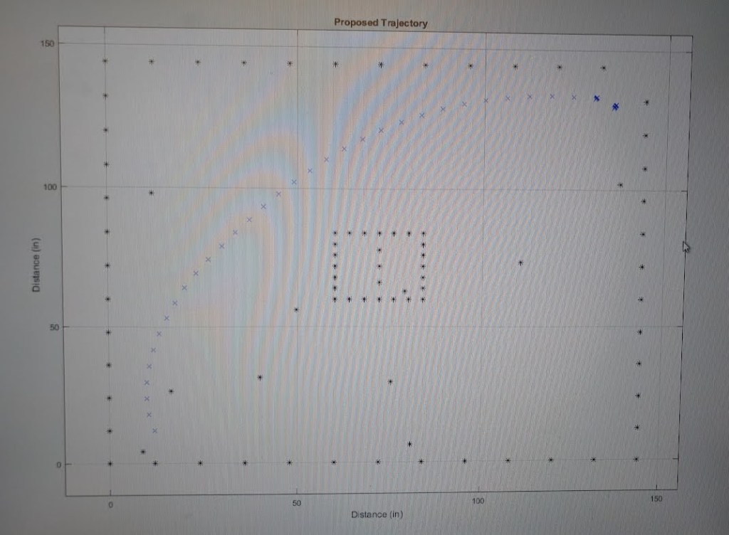 My main contribution to this project was to develop the navigation algorithm. I borrowed heavily from this Carnegie Mellon slide deck to develop a potential function algorithm. The math here was pretty straightforward, but it was a lot of work to build a digital test environment in MatLab, and to confirm that the machine was working correctly in real time.