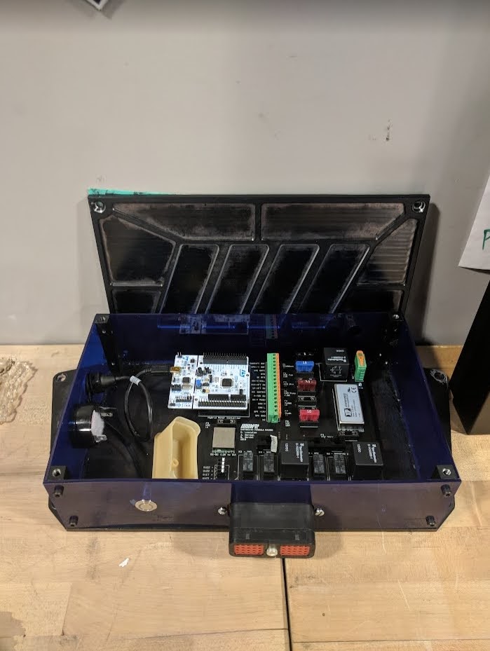 For the 2017/18 formula hybrid season, I wanted to shift my focus away from mechanical work and into the electrical systems of the vehicle. I ended up taking on a complete revamp of the low voltage system, which primarily functions as a safety circuit for shutting down systems in the event of failures or shorts. Our previous system was made on a breadboard, and was poorly documented and relatively physically unstable.