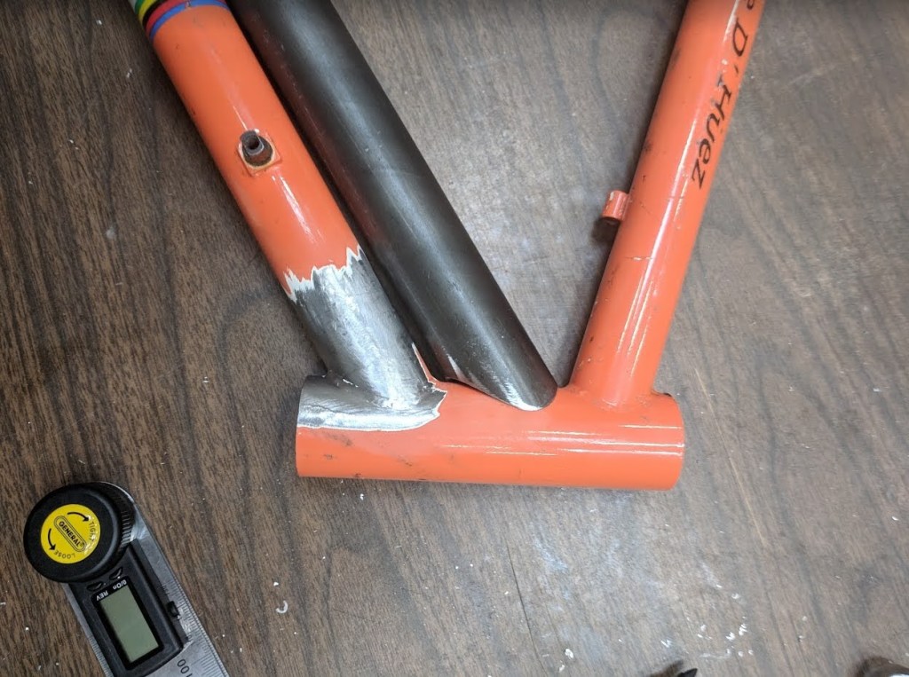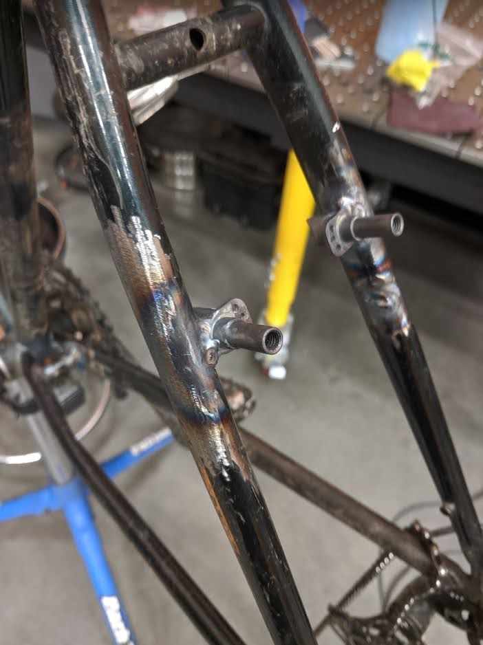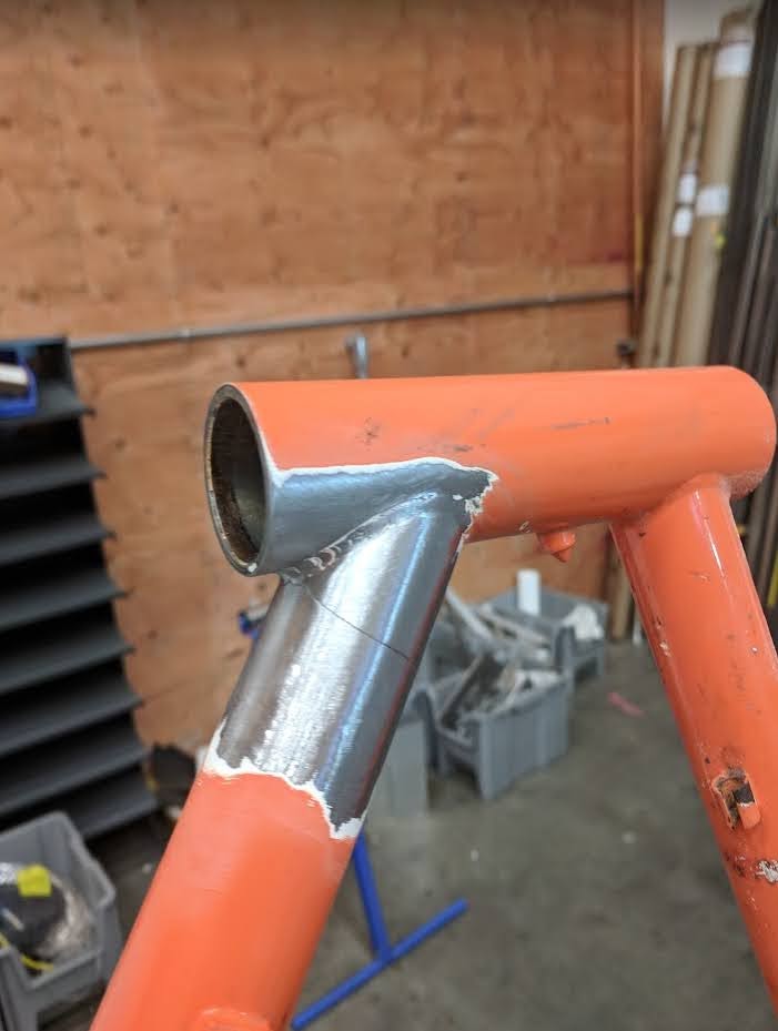 Another small welding project was to modify this 90’s Rockhopper to fit 700c wheels. This involved messing around with the location of the canti studs and chainstay bridge. Additionally I put a more modern fork up front that was pre-sized for 700c wheels. I raced this bike at Grinduro in Chico CA and had a blast, but eventually wrecked it when I buckled the fork while doing laps at Laguna Honda. In retrospect – a fun learning experience, but not worth the effort + the finished result did not handle nor feel exceptional. Let old bikes be old bikes 🙂